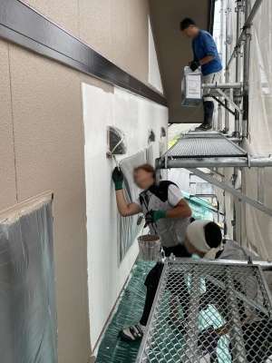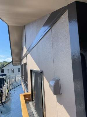 塗料の特性や施工方法、工事中の近隣の方々への気配り内容や、職人さんの施工に対する姿勢など細かく説明させていただき安くはない施工価格ではありますがご採用いただきました。今回の塗装箇所はガルバリュウム鋼板の屋根、リシン吹付けされていた壁、雨樋、軒天、各水切り板金となります。思い切って色も現状から大きく変更されました。大地震の後に発生した外壁のひび割れ部分につきましては塗装後に跡が浮き出てこないように何度も下地処理を繰りかえし完成にいたりました。そこも職人さんの拘りとなります